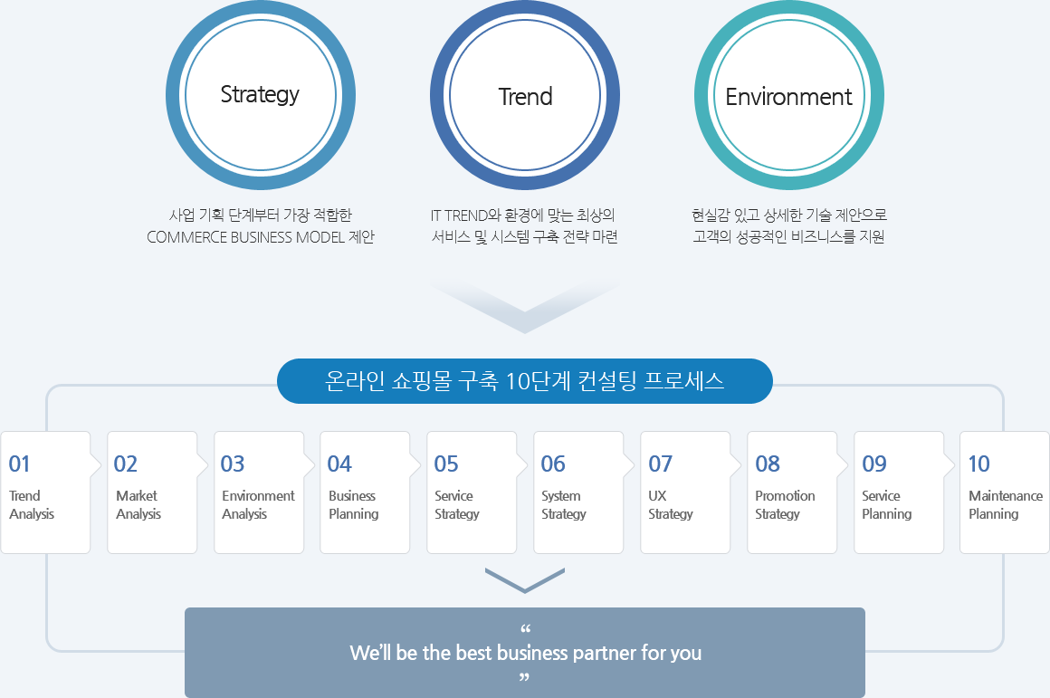 Æ®·»µå¿Í ±â¾÷ÀÇ È¯°æÀ» ºÐ¼®ÇÏ¿© ÃÖÀûÀÇ ºñÁî´Ï½º ÀλçÀÌÆ®¸¦ ȹµæÇϰí, À̸¦ ±â¹ÝÀ¸·Î Â÷º°È µÈ ÄÁ¼³ÆÃ Àü·«À» ¼ö¸³ ÇÕ´Ï´Ù.