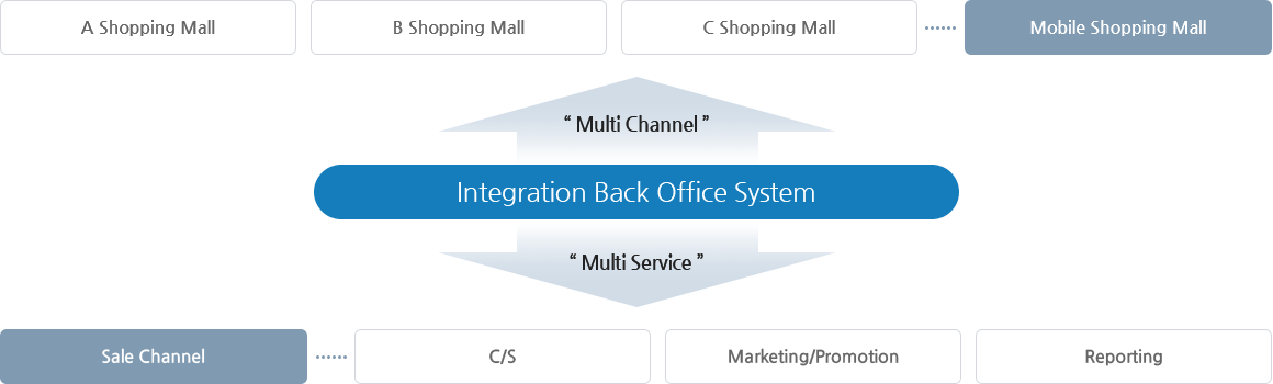 ¾²¸®Å¾ÀÇ ÀüÀÚ»ó°Å·¡ Ç÷§ÆûÀº N°³ÀÇ ¼îÇθô°ú ¼ºñ½º¸¦ 1°³ÀÇ ÅëÇÕ ¹é¿ÀÇǽº¿¡¼ ÄÁÆ®·Ñ ÇÒ ¼ö ÀÖ´Â ±¸Á¶·Î ¼³°è µË´Ï´Ù.