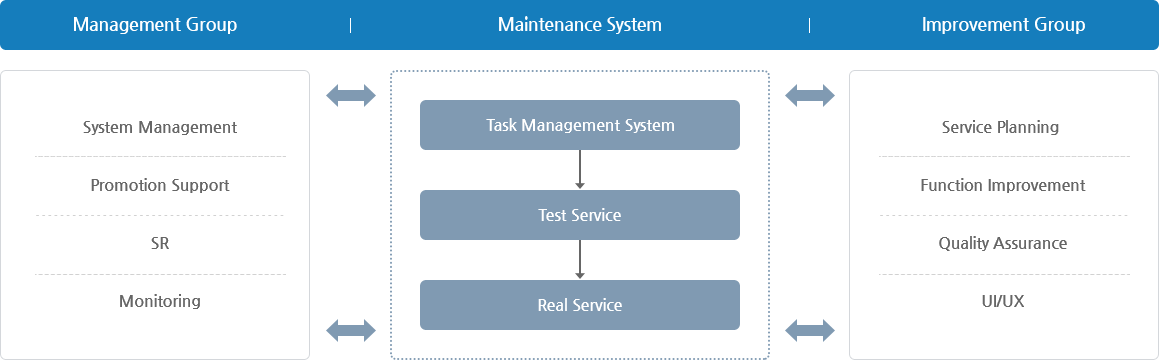 ½Ã½ºÅÛ ±¸Ãà ÀÌÈÄ ¾ÈÁ¤ÀûÀÎ ¿î¿µ / À¯Áöº¸¼ö¸¦ À§ÇÑ 3´Ü°è ¿î¿µ°ü¸® ½Ã½ºÅÛÀ» µµÀÔÇÕ´Ï´Ù. »ç¾÷ÀÇ È®Àå¿¡ µû¶ó ¹ß»ýµÇ´Â ±â´É °³¼± ¹× ¼ºñ½º °íµµÈ¸¦ À§ÇÑ ´Ù¾çÇÑ ¾÷¹«¸¦ ´Éµ¿ÀûÀ¸·Î Áö¿øÇϸç, »ç°í¿¹¹æ°ú ½Ã½ºÅÛ ¾ÈÁ¤¼º È®º¸¸¦ À§ÇØ ¸ð´ÏÅ͸µ