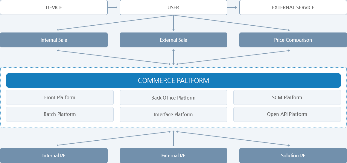 Top-Commerce Solution ´Ù¾çÇÑ »ç¿ëÀÚ È¯°æ¿¡ ´ëÀÀ °¡´ÉÇϸç, ±â¾÷ÀÇ ³»/¿ÜºÎ ½Ã½ºÅÛ °£ÀÇ À¯±âÀûÀÎ ¿¬µ¿ÀÌ °¡´ÉÇÕ´Ï´Ù.